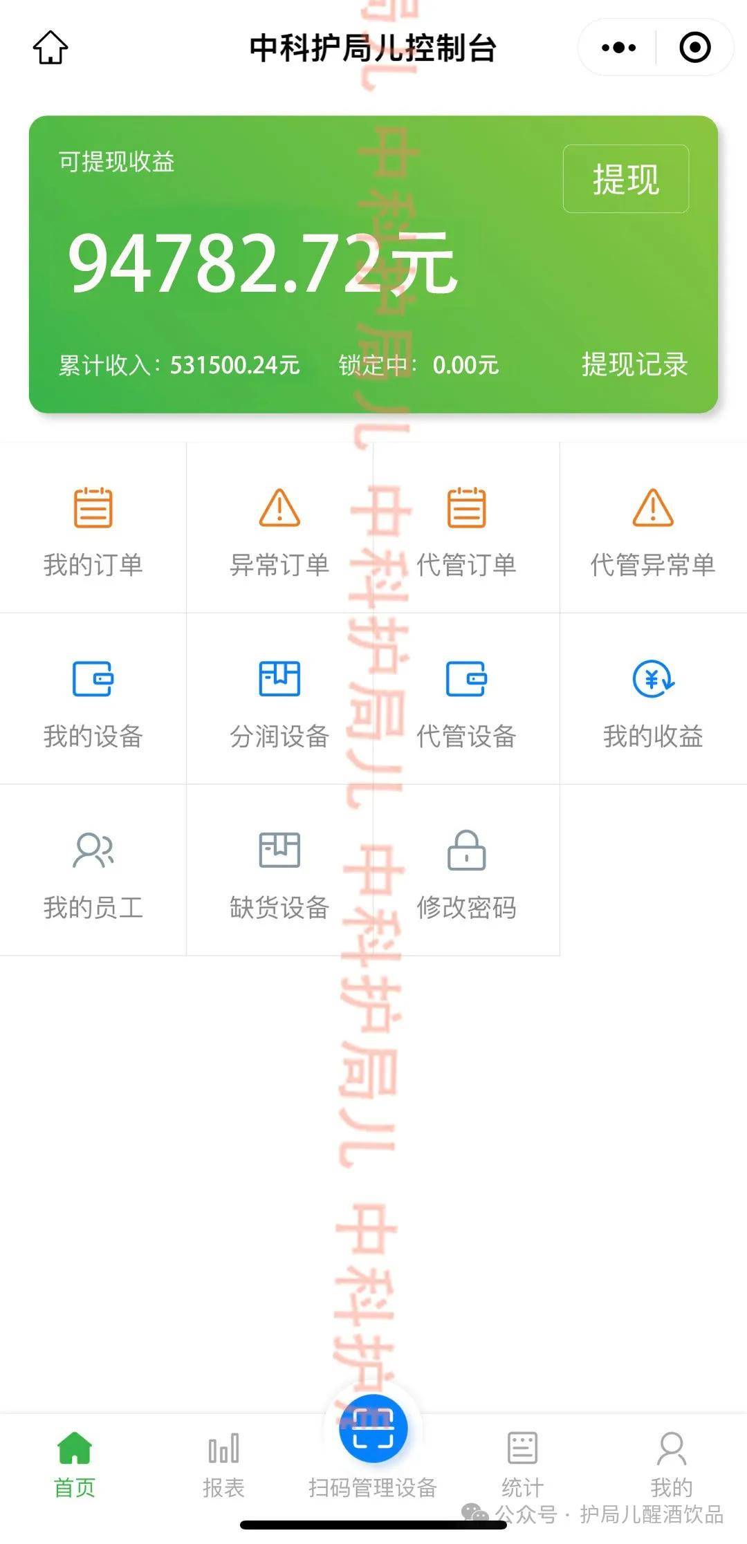 护局儿合作伙伴后台收益示意图