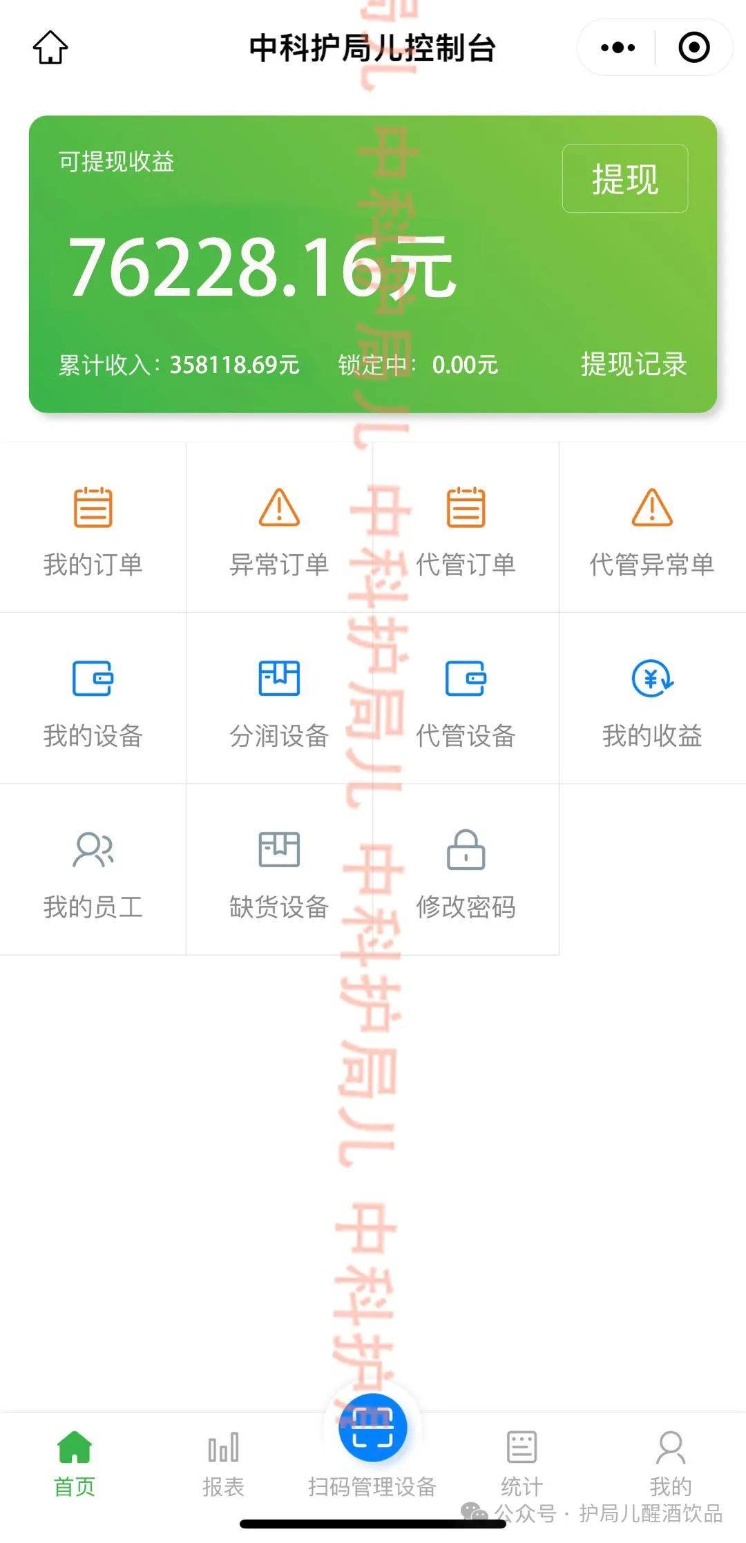 护局儿醒酒饮自动售卖机后台收益示意图